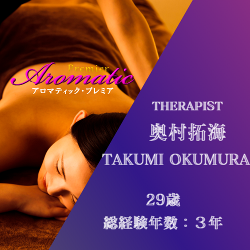 経験通算6年間と中堅セラピスト。サロン経験・出張経験を経て入店。癒し力、清楚且つ容姿、体型、性格人気No.1誇る期待の男性セラピストです。